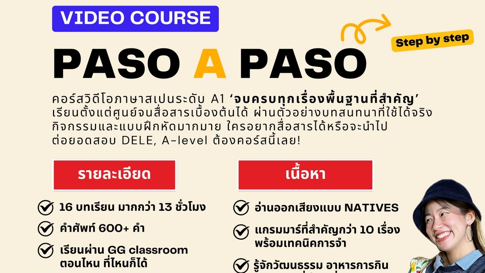 PASO A PASO คอร์สวิดิโอภาษาสเปน 13 ชม. (A1)