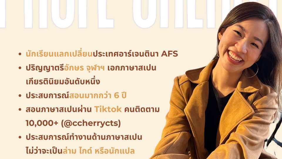 ✨ Why PASO A PASO? ✨ 1️⃣ Beginner Friendly สุดๆ สำหรับคนไม่มีพื้นฐานภาษาสเปนเลยก็เริ่มได้สบายมาก! คอร์สนี้วางรากฐานแน่นๆ พร้อมพาไปถึงจุดที่ “ฟัง-พูด-สื่อสาร” ได้ 🗣️💬 2️⃣ เรียนที่ไหน เมื่อไหร่ก็ได้! สะดวกเมื่อไหร่ก็แวะมาเรียนได้เลย ⏰ เปิดเรียนได้ 24/7 อยากเรียนตอนนอนบนเตียงหรือที่ร้านจิบกาแฟก็ได้หมด! 3️⃣ เรียนแบบไม่ท่องจำ เราสอนแบบเข้าใจง่าย ผ่านสถานการณ์จริงให้นำไปใช้ได้จริงในชีวิตประจำวัน 🎯 ตรงตามคอนเซปต์ “เพราะเรียนภาษาต้องสนุกและใช้ได้จริง” ของสถาบัน 4️⃣ รวมศัพท์ 600+ พร้อมแบบฝึกหัดแน่น ๆ ศัพท์แยกหมวดให้อ่านเพลิน 📚 แถมมี แบบฝึกหัดโต้ตอบ ที่คุณจะได้ฟังครูเชอร์รี่ถาม แล้วลองตอบเป็นภาษาสเปนเอง 🎙️🗣️ ฝึกสนทนาให้ชิน แบบใช้จริงในชีวิตประจำวัน!