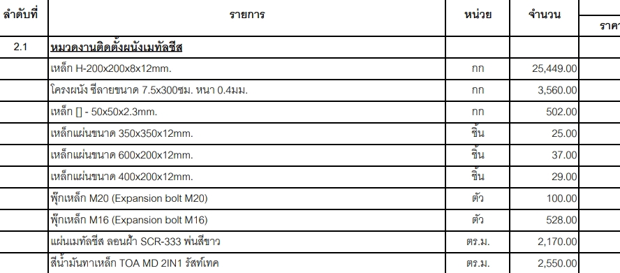 งานประมาณราคา บ้าน อาคาร โกดัง