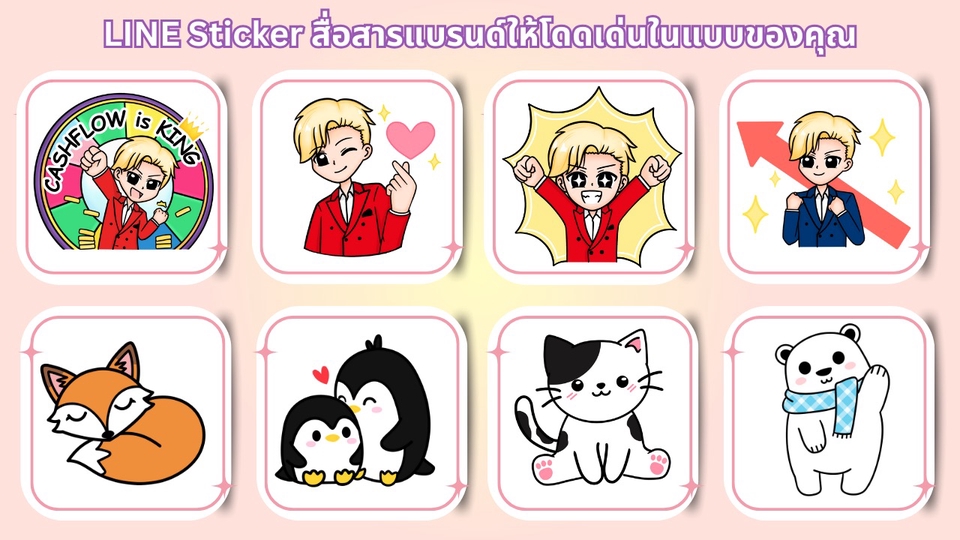 ออกแบบสติกเกอร์ไลน์สำหรับแบรนด์ดิ้ง ด้วยคาแรกเตอร์ที่น่าจดจำ สำหรับธุรกิจ / ร้านค้า / อินฟลูเอนเซอร์