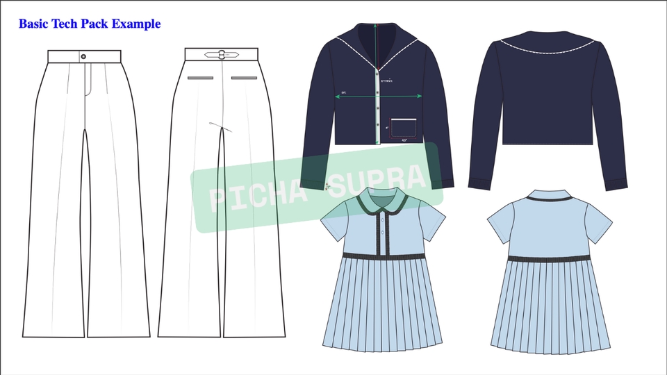 รับวาด flat drawing & tech pack เสื้อผ้าอย่างละเอียด พร้อมใช้งานสำหรับการส่งต่อให้โรงงานผลิต