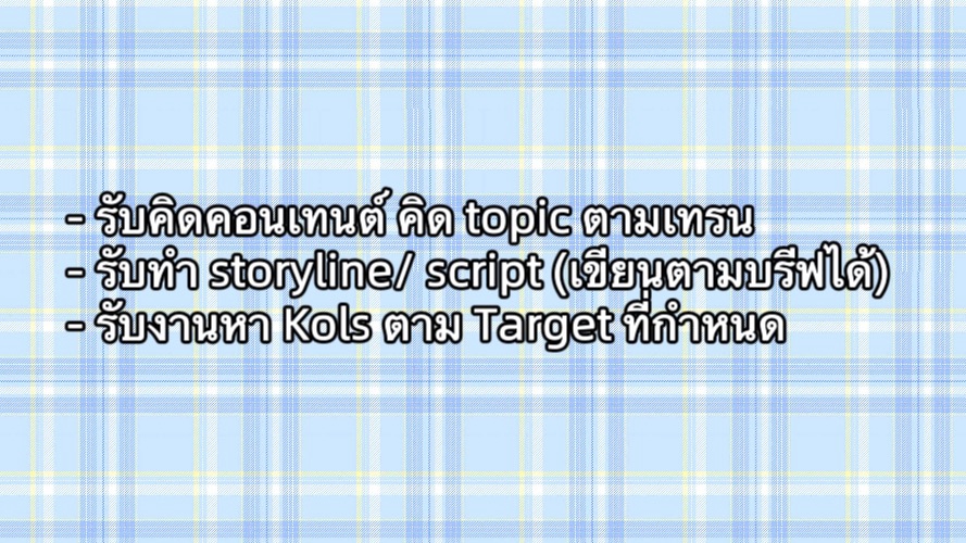 รับงาน คิดคอนเทนต์ / เขียนสคริปต์ (3 คลิป) / หา Kols