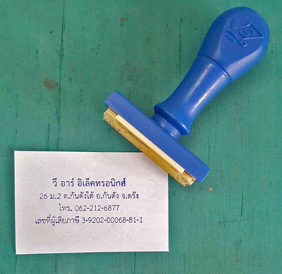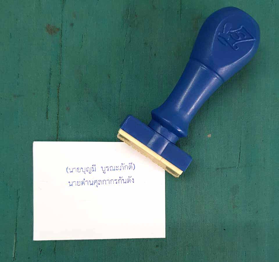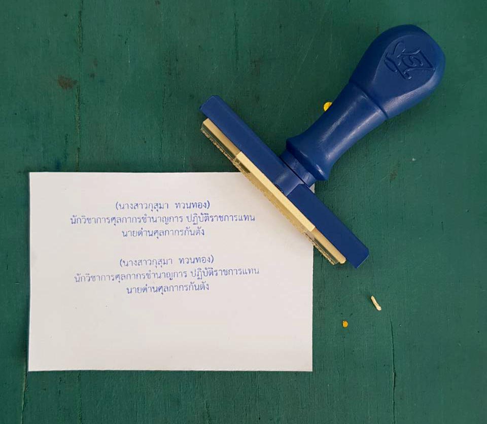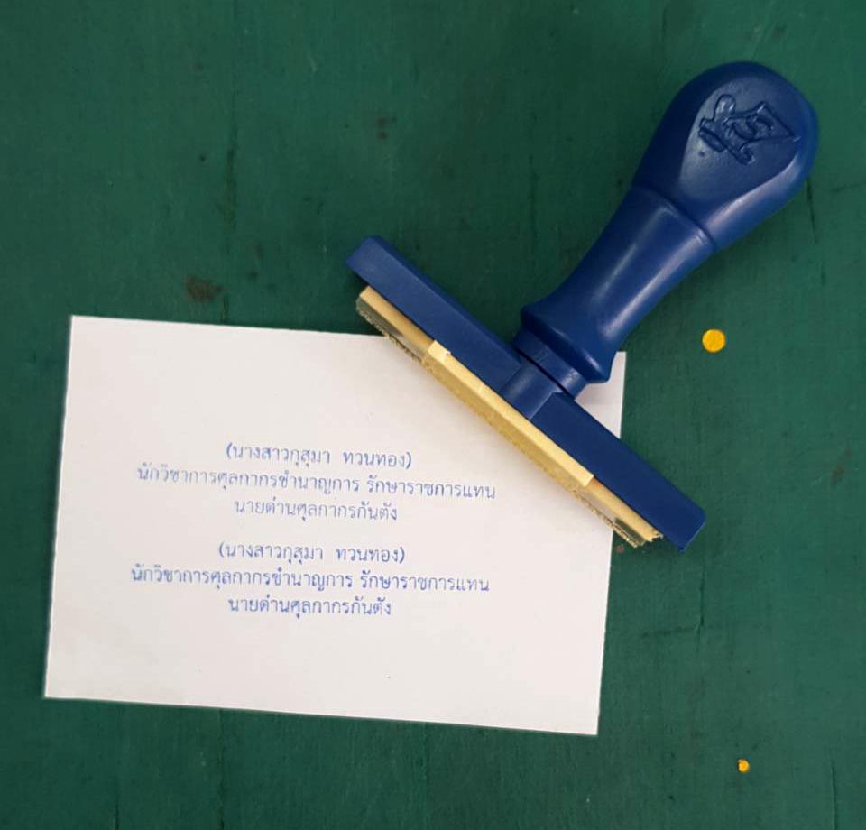 ตรายางชนิดธรรมดา (จำหน่าย ปลีก-ส่ง) สำหรับ บริษัทเอกชน, ห้างหุ้นส่วนจำกัด, หน่วยงานราชการต่างๆ, โรงพยาบาล, โรงเรียน, ตรายางหัวบิลเงินสด, ตรายางหมู่บ้าน, ตรายางโลโก้ต่างๆ, ตรายางลายเซ็น รวมถึงผู้ใช้งานทั่วไป เน้นใช้งานง่าย ทนทาน ตัวอักษรคมชัด ราคาและคุณภาพได้มาตรฐาน ขั้นตอนการทำงาน 1. แจ้งรายละเอียดงาน เช่น ชื่อ สกุล ชื่อบริษัท ที่อยู่ เบอร์ติดต่อ ฯลฯ 2. ทางร้านดำเนินการประเมินเวลาส่งแบบงาน และเริ่มทำแบบงานให้ในวันถัดไป 3. ส่งแบบงานให้ลูกค้าดูเพื่อยืนยันความถูกต้องและเริ่มผลิตให้หลังจากยืนยันแบบแล้ว 4. ระยะเวลาในการผลิตเฉลี่ยอยู่ที่ประมาณ ไม่เกิน 1-2 วัน 5. ส่งชิ้นงานให้ในวันทำการ **ไม่เกิน 16:00 น. ของทุกวัน ยกเว้น วันอาทิตย์เท่านั้น**