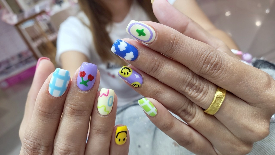 ทาสีมือ+เพ้นท์+ต่อเล็บ