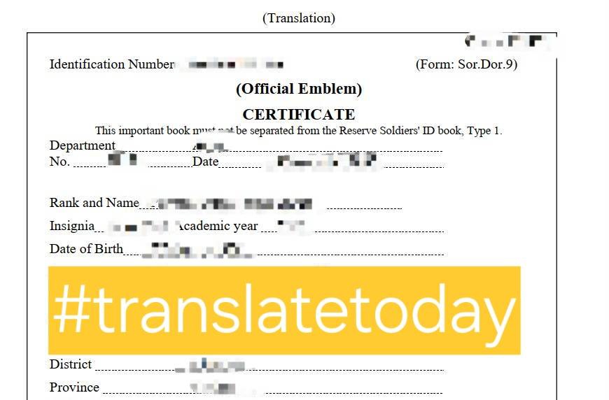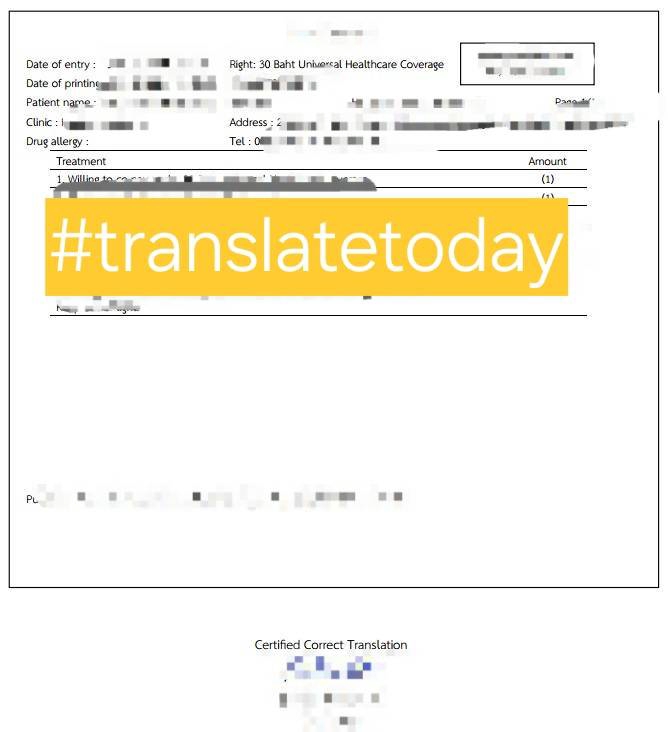 แปลเอกสารประกอบการขอ visa เช่น ใบแจ้งเกิด สำเนาทะเบียนบ้าน สำเนาบัตรประชาชน หนังสือราชการ โฉนดที่ดิน หนังสือรับรองบริษัท หนังสือจดทะเบียนบริษัท หนังสือรับรองเกษตรกร หนังสือรับรองเงินเดือน บัตรประจำตัวที่ทางราชการออกให้ ขั้นตอนการทำงาน 1. ส่งเอกสารเพื่อประเมินราคา แจ้งรายละเอียดอื่นๆ ที่ต้องการ 2. แจ้งราคางานและวันที่ได้รับ 3. หลังจากตกลงแล้วดำเนินการภายในเวลาที่กำหนด