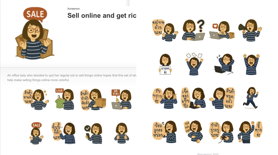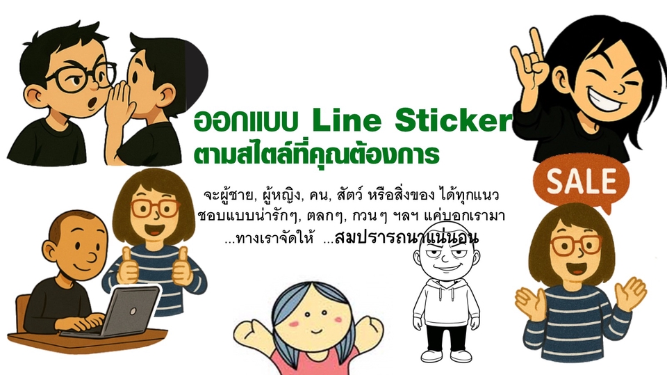 งานออกแบบ Line Sticker เป็นงานที่สนุกดีอีกรูปแบบนึงครับ ถ้าลูกค้าสนใจจะสร้าง Sticker ไว้ใช้ในองค์กร หรือไว้ใช้ส่วนตัว ลองโทรมาปรึกษากันได้ครับ ผมยินดีรับออกแบบให้ได้ตรงใจคุณมากที่สุดครับ ขั้นตอนการทำงาน 1. Concept Brief และส่งภาพ Reference ที่อยากได้มาคุยกับเราครับ 2. ประเมินและสรุปราคา (เมื่อลูกค้าตกลงราคาทางผู้ออกแบบจะเริ่มการทำงานทันที) 3. ส่ง Draft งานเพื่อสรุปและปรับแก้ (ภายใน 1-3 วันทำการ) 4. หลังจากสรุปจบ ทางเราจะส่ง Final File ให้กับทางลูกค้า และปรับแก้ 5. ดูแลและปรับแก้ (ในกรณีทาง Line แจ้งภาพผิดพลาด) จบจนงาน (ไม่จำกัดจำนวนครั้ง)