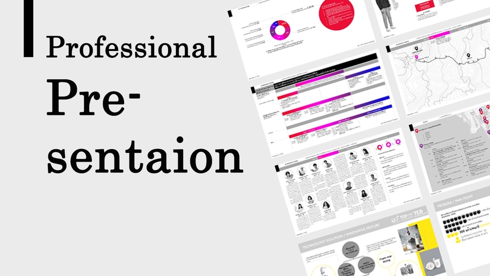 Professional Presentation ข้อมูลแน่น มีความน่าเชื่อถือ สรุปข้อมูลที่เข้าใจยากให้เข้าง่ายและน่าสนใจ จากกราฟและ infographic เช่น ข้อมูลการวิจัย การวิเคราะห์ สถิติ เป็นต้น มีประสบการณ์การทำงานกับ Startup นักศึกษา และบริษัทต่างๆ ขั้นตอนการทำงาน 1. รับงานจากลูกค้า (ประเภทงาน รายละเอียดงาน วัตถุประสงค์ของงาน สีของแบรนด์ (ถ้ามี) และอื่นๆ) 2. ลูกค้าส่งข้อมูล ไฟล์ PowerPoint (จัดการข้อมูลและรูปภาพที่ต้องการในแต่ละสไลด์มาเรียบร้อยแล้ว) สามารถส่งไฟล์ข้อมูลมาประกอบได้ 3. ถ้ามีรูปภาพที่ต้องการให้หาเพิ่มเติม โปรดแจ้ง 4. ถ้ามีเนื้ิอหาที่ต้องการให้ทำกราฟฟิกเพิ่ม โปรดแจ้ง 5. ประเมินราคาและระยะเวลาในการทำงาน 6. ส่งงานให้ลูกค้า สามารถแก้ไขงานได้ไม่เกิน 2 ครั้ง
