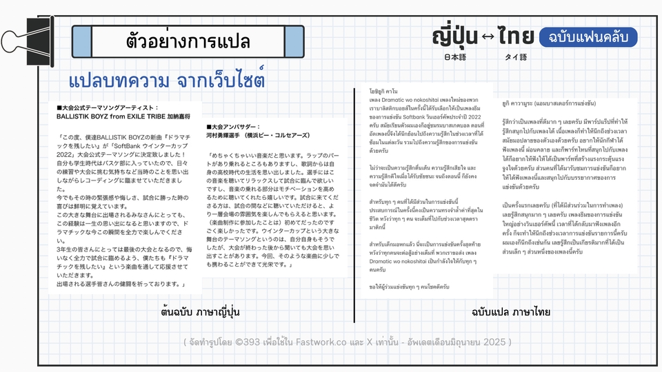 แปล ญี่ปุ่น-ไทย ฉบับแฟนคลับ