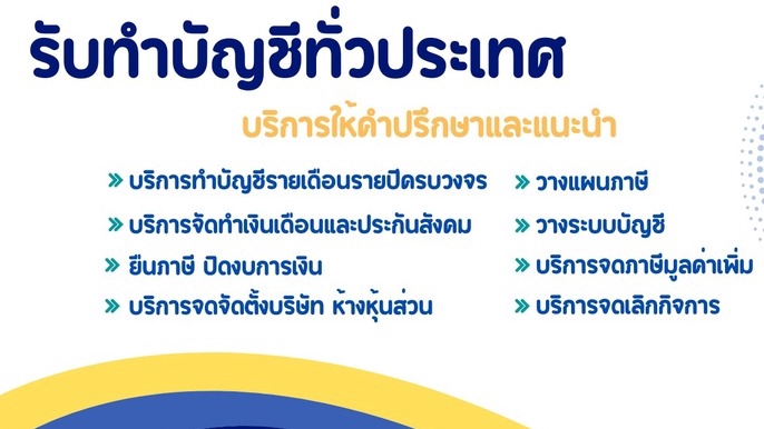 รับทำบัญชีทั่วประเทศ ยื่นภาษี ประกันสังคม วงแผนบัญชีและภาษี จดทะเบียนบริษัท