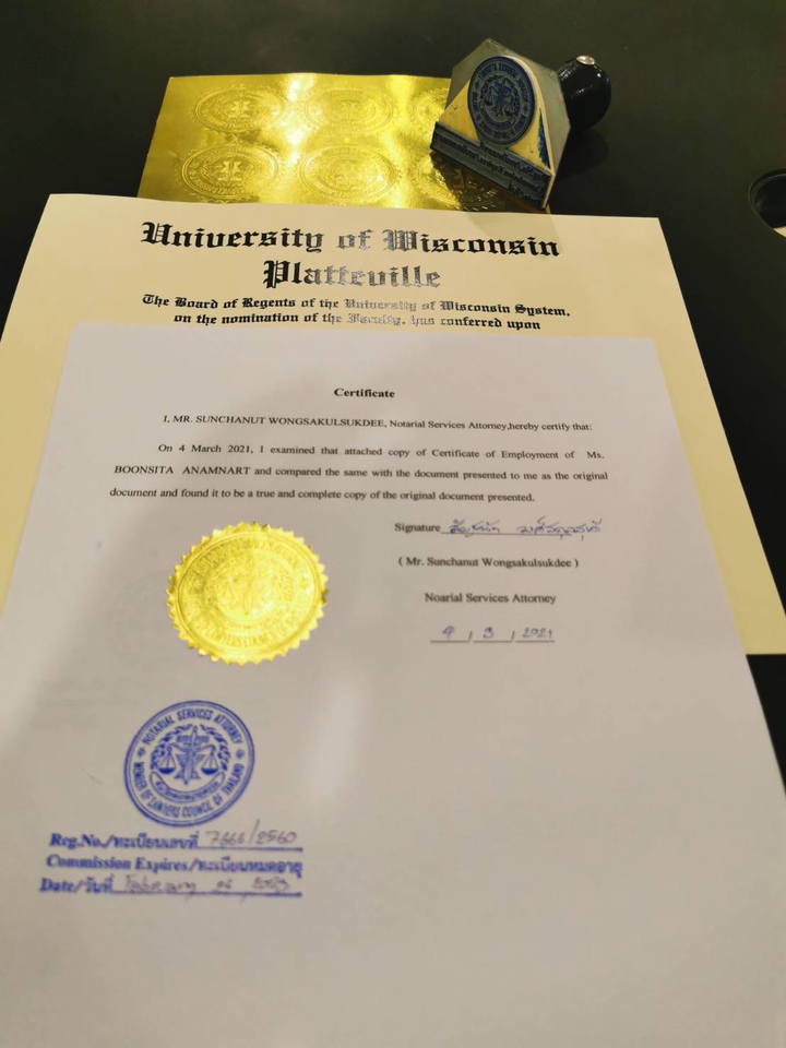 1.ได้รับการรับรองลายมือชื่อ และสติ๊กเกอร์ที่ออกโดยสภาทนายความ)Notary stamp 2.ตราประทับคำรับรอง (Notary Seal) 3. A copy of Certificate of Notarial service attorney. สำเนาหนังสือรับรองทนายความผู้ทำคำรับรอง