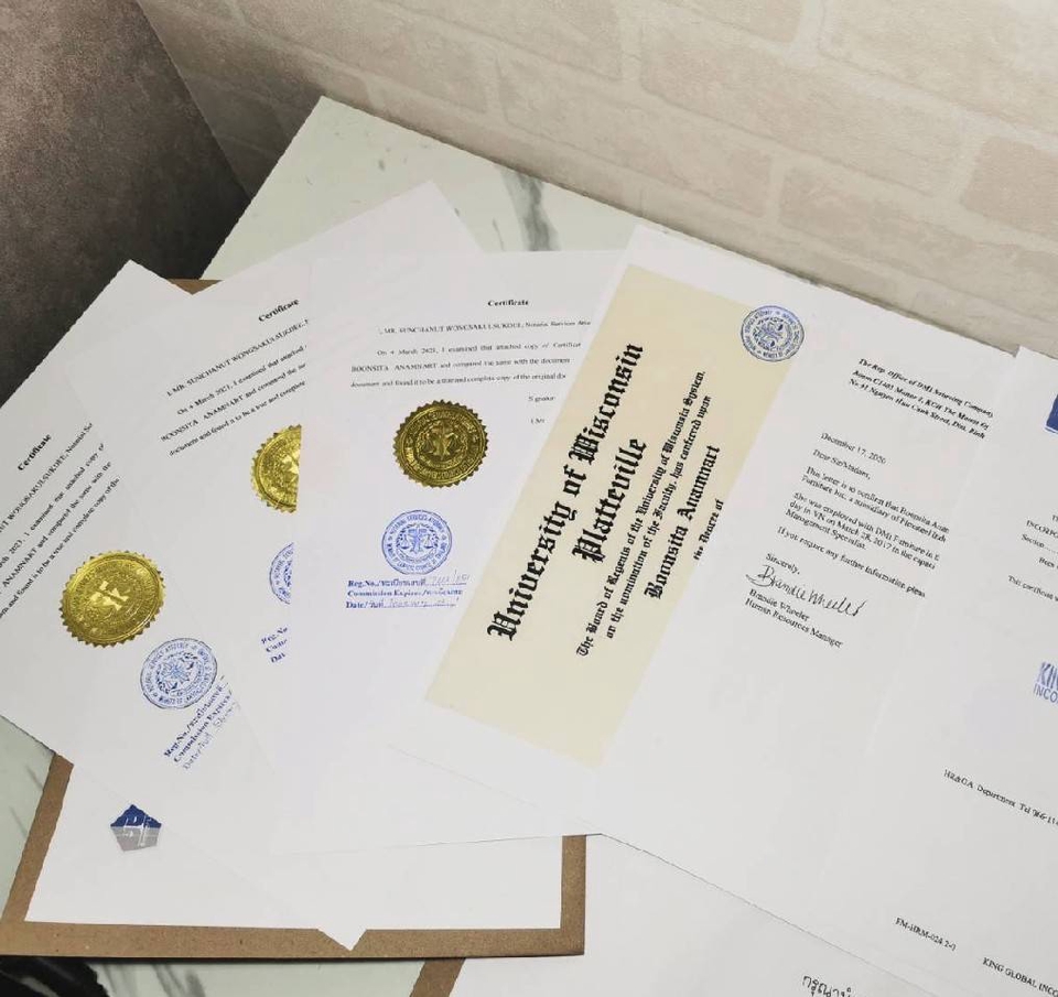 รับรองเอกสาร ลายมือชื่อ รับรองความถูกต้องตรงกันของเอกสาร (Notarized copy), (Notarized affidavit) รับรองสถานะนิติบุคคล อำนาจกรรมการและลายมือชื่อ รับรองได้ทั้ง ภาษาไทยและภาษาอังกฤษ รับบริการทั่วราชอาณาจักร บริการรับรองเอกสารหรือลายมือชื่อในเอกสาร (เริ่มต้น 1,000 บาท) มีบริการนอกสถานที ขั้นตอนการทำงาน 1. 1. ลูกค้าแจ้งรายละเอียดงานว่าต้องการให้ทำคำรับรองประเภทใด เอกสารใด และถ้อยคำรับรองเป็นภาษาอะไร 2. 2. ทนายความแจ้งราคาค่าบริการตามขอบเขตของเอกสารที่ต้องทำคำรับรอง 3. 3. ลูกค้าชำระค่าบริการเต็มจำนวน และนัดหมายวัน เวลา และสถานที่เพื่อทำคำรับรอง 4. 4. ทำคำรับรองต่อหน้าทนายความผู้ทำคำรับรองลายมือชื่อและเอกสาร 5. 5. เสร็จงานเป็นที่เรียบร้อย
