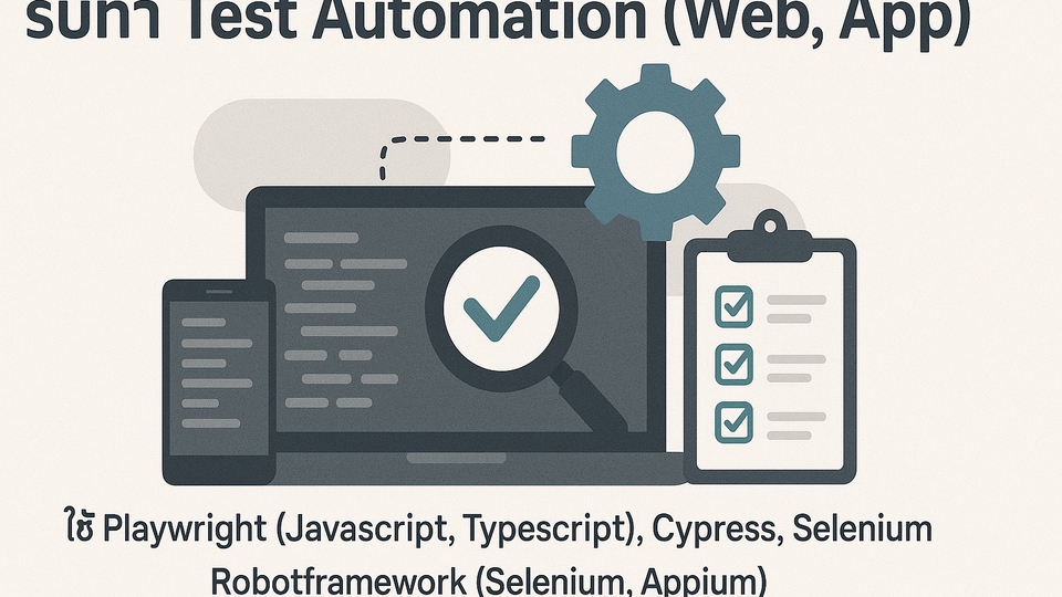 Full-time QA Engineer ที่รับเขียน Test Automation Script ในหลายๆ Framework ไม่ว่าจะเป็น Playwright, Cypress, Selenium, Robotframework ทั้ง mobile และ web
