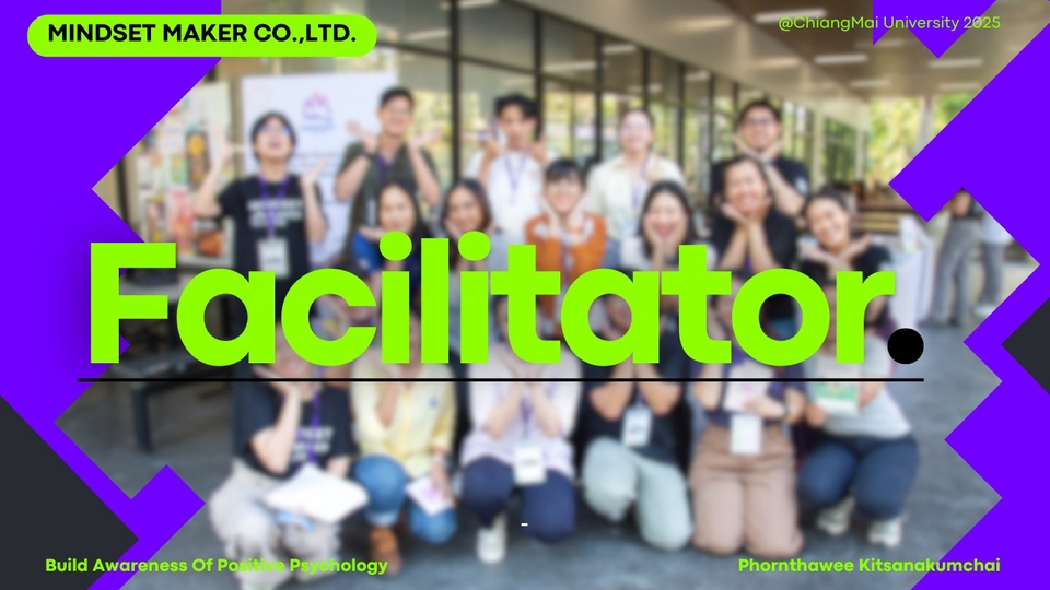 ฿800•กระตุ้นการมีส่วนร่วมของผู้เข้าร่วม •ช่วยให้กลุ่มสื่อสารและตัดสินใจร่วมกัน •บรรยากาศการเรียนรู้ให้ปลอดภัยและสร้างสรรค์ •ควบคุมเวลาให้กิจกรรมหรือเวิร์กช็อปไหลลื่น •เป็นกลาง ไม่ตัดสิน ไม่เข้าข้าง
