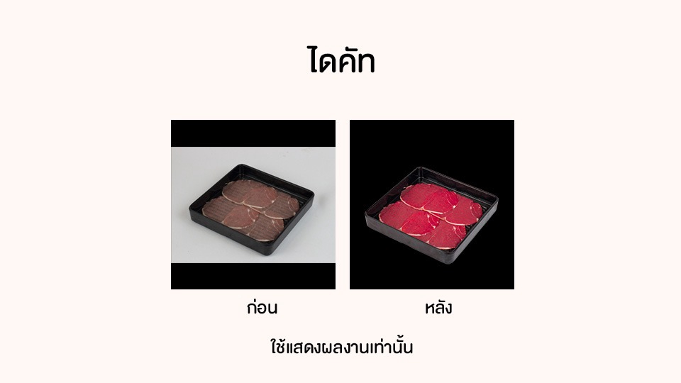 ไดคัท: ตัดพื้นหลังของภาพออก ทำพื้นหลังโปร่งใส ไฟล์ .png หรือพื้นหลังสีขาว ไฟล์ .jpg -------------- รีทัช: รีทัชลบ สิ่งที่ไม่ต้องการ รีทัชเปลี่ยนแปลง ลบสิ่งของต่างๆ รีทัชเปลี่ยนสี -------------- ตัดต่อ: ตัดต่อใบหน้า รูปติดบัตร ใส่ชุดสูท (ลูกค้าต้องมีรูปชุดที่ต้องการมาให้) -------------- แต่งภาพ: ปรับแต่งภาพ ให้ภาพถ่ายมีความสวยงามยิ่งขึ้น ขั้นตอนการทำงาน 1. ลูกค้าแจ้งรายละเอียดของงาน / ส่งภาพงานให้ฟรีแลนซ์ ประเมินราคา 2. ฟรีแลนซ์ทำใบเสนอราคา ให้ลูกค้าชำระเงิน 3. ฟรีแลนซ์ส่งไฟล์งาน (แบบติดลายน้ำ)ให้ลูกค้า 4. ลูกค้ากดปุ่มอนุมัติงาน และ หลังจากนั้นฟรีแลนซ์ส่งไฟล์งานสมบูรณ์ แบบไม่ติดลายน้ำให้ลูกค้า 5. เสร็จสิ้นงาน