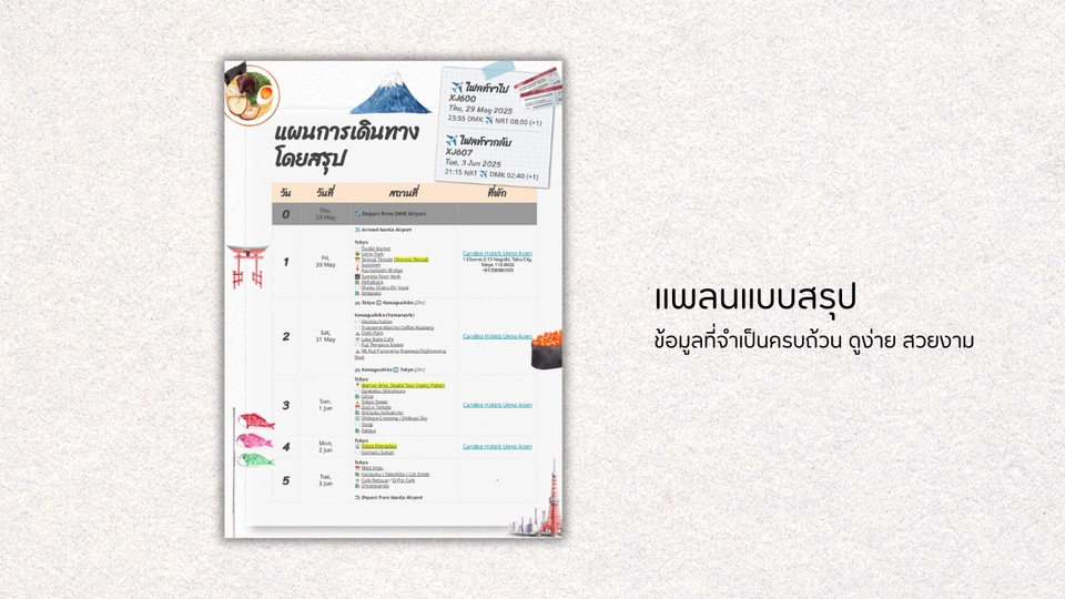 แพลนฉบับสรุป (ทริปไม่เกิน 7 วัน)