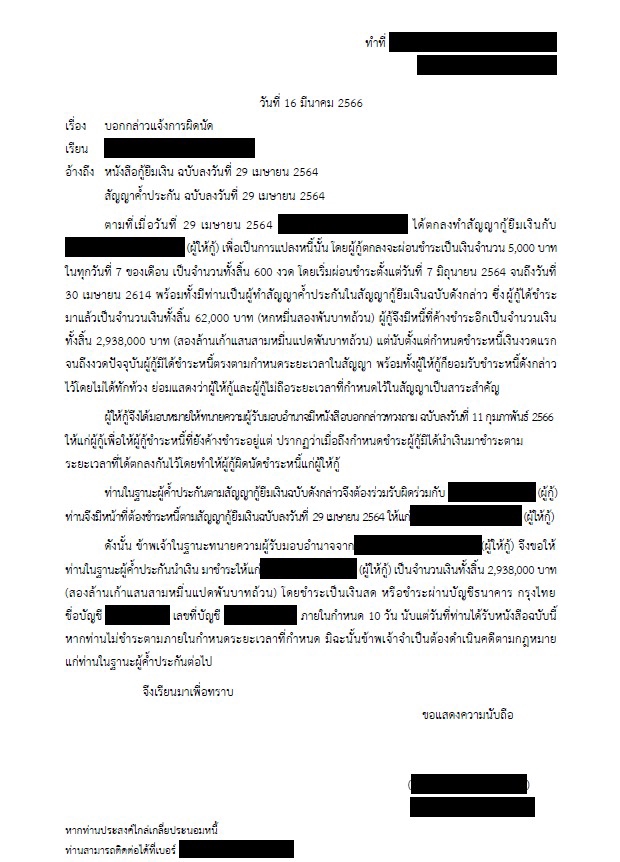 ฿1,0001. โนติส 1 ฉบับ (ตามประเด็นที่ลูกค้าต้องการ) 2. พร้อมส่งและแนบใบตอบรับให้คู่กรณี