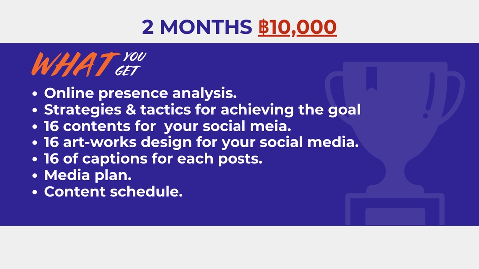 ฿5,000Content Marketing - ออกแบบคอนทนต์ให้เหมาะกับ Page และ Product / Service ของคุณ งานที่พร้อมโพสต์ทาง Social Media ตามจุดประสงค์ที่ตั้งไว้ Artwork/ Caption