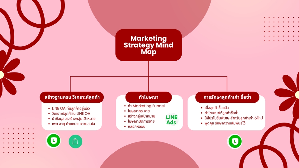 1.เราบริการครบวงจรทั้งแต่ LINE OA ตั้งค่า ริชเมนู ริชแมสเสจ ริชวีดิโอ การบรอดแคสต์ แท็ก ข้อความตอบกลับอัตโนมัติ เป็นต้น (Rich Menu, Rich Message, Rich VDO, Broadcast, Tag, Auto Response 2.การตั้งค่า LINE Shopping ตกแต่งหน้าร้าน นำสินค้าเข้าร้าน ตี้งค่า ่ทำรูปภาพ 3.การทำโฆษณาทาง LINE ตั้งแต่ไม่มีลูกค้า เพิ่มเพื่อนเข้ามาเรื่อยๆ ต่อด้วย ทำโฆษณาหลอกหลอน ตามด้วย Step Message ตอนการทำโฆษณา ด้วยต้นทุนที่ต่ำที่สุด ขั้นตอนการทำงาน 1. ขอรายละเอียดสินค้าและบริการจากผู้ว่าจ้าง 2. ความต้องการและความคาดหวังจากการจ้างในครั้งนี้ 3. เริ่มตั้งแต่ LINE OA ตั้งค่าต่างๆ โปรไฟล์ การ์ดแมสเสจ ริชเมนู ริชวีดิโอ ริชแมสเสจ แท็ก ข้อความตอบอัตโนมัติ ข้อความตอบกลับ บรอดแคสต์ เป็นต้น 4. ต่อมาตั้งร้านค้า MyShop สู่ตลาด LINE SHOPPING ตั้งค่าร้านค้า ลงสินค้าต่างๆ การทำโปรโมทสินค้าทาง Wow Item การร่วมแคมเปญ ต่างๆ 5. การทำโฆษณาทาง LINE เข้ามาที่ LINE OA ด้วยต้นทุนที่ต่ำกว่า ปักหมุดได้ อายุ เพศ พื้นที่ ทำให้ได้ลูกค้าตัวจริง