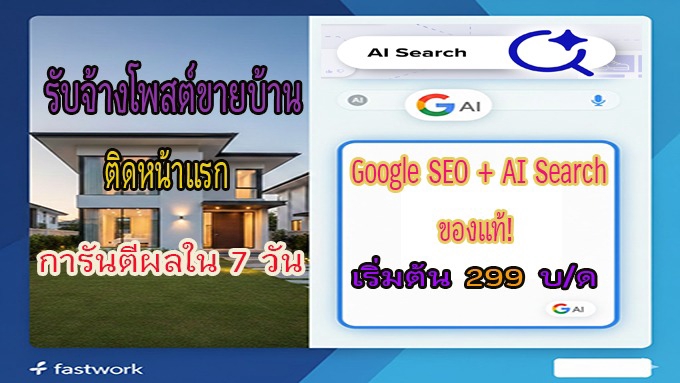 🚀 รับจ้างโพสต์ขายบ้าน ติดหน้าแรก Google SEO + AI Search การันตีผลใน 7 วัน (เริ่มต้น 10.-/วัน)