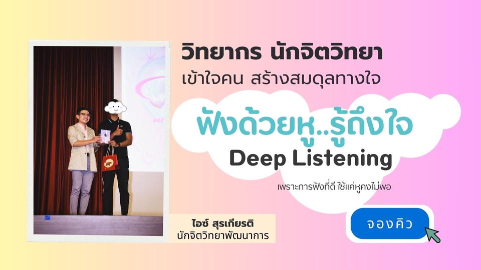 วิทยากร พัฒนาทักษะการรับฟัง เข้าใจคน สร้างสมดุลทางใจ บรรยายโดยนักจิตวิทยา