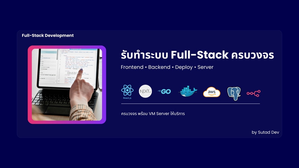 - • ครบวงจร: Front-end + Back-end + Infra + Database