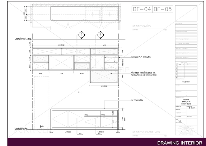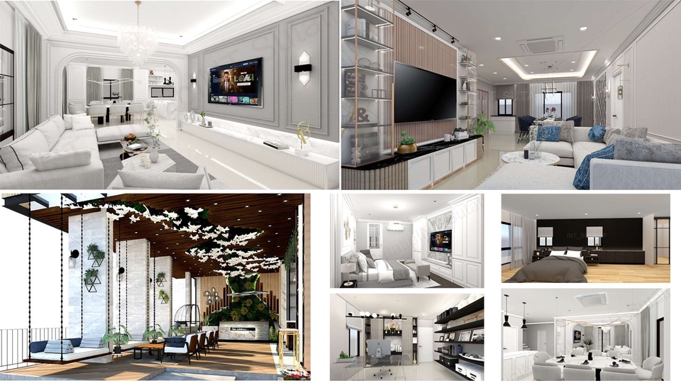 ออกแบบงานตกแต่งภายใน โดยมีรายละเอียด ดังนี้ 1. จัดทำแบบ PRESENT INTERIOR Plate 2. จัดทำการเขียนแบบ FOR CONSTRUCTION 3. เขียนแบบ FURNITURE (BUILT-IN & ลอยตัว) 4. และรายละเอียดอื่นๆ ที่เกี่ยวข้อง ขั้นตอนการทำงาน 1. รับ BRIEF + ความต้องการ จากลูกค้า 2. ่เสนอราคา 3. เสนอ MOOD & CONCEPT + PERSPECTIVE 4. ทำแบบ DRAWING