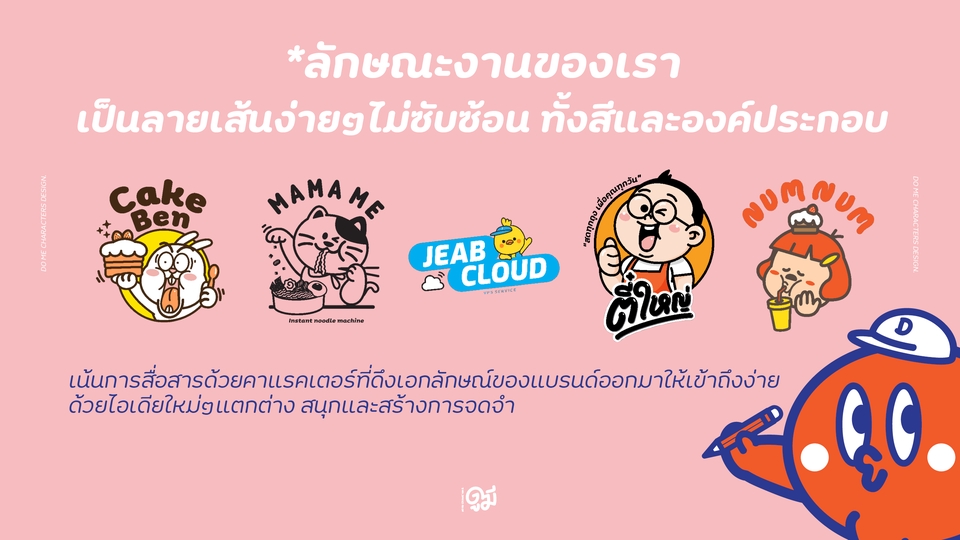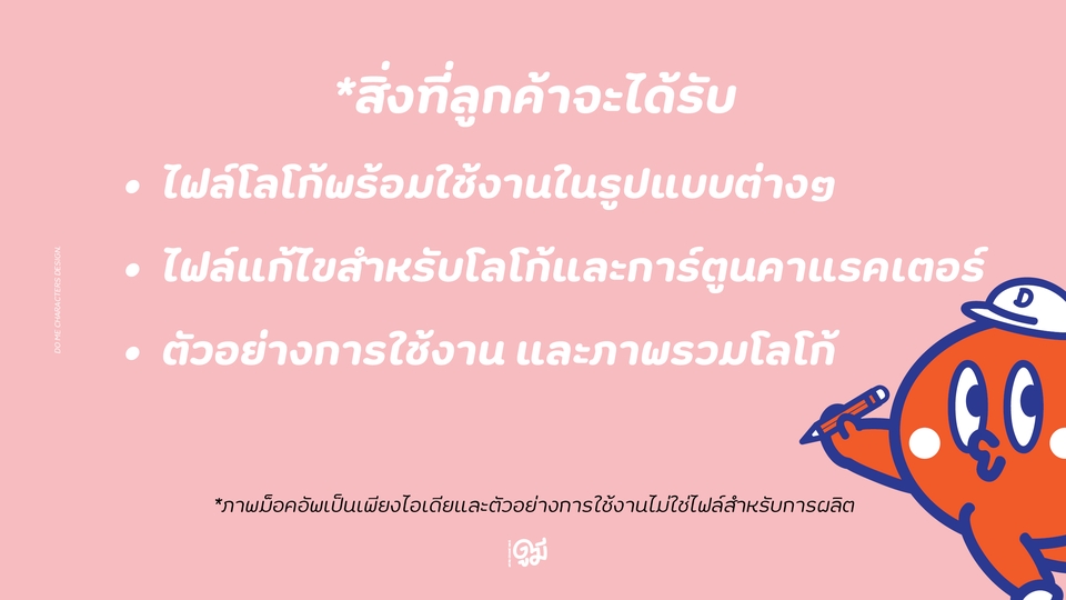 สวัสดีครับ Do Me Characters Design ยินดีต้องรับครับ 🙏😊 *เราออกแบบงานโลโก้คาแรคเตอร์สำหรับ SME ได้เข้าถึงการใช้งาน Brand Character และ CI ได้มากขึ้น สามารถสื่อสารตัวตนของสินค้าและบริการ สร้างการจดจำจากเอกลักษณ์ที่แตกต่างด้วยลายเส้นการ์ตูนคาแรคเตอร์ที่ไม่ซับซ้อน มีชีวิตชีวา เข้าถึงง่ายและเป็นมิตรกับผู้บริโภค ต่อยอดธุรกิจให้เติบโตได้หลากหลาย : สื่อสารได้มากว่า คุ้มกว่า สนุกกว่า!! ✨ ลูกค้าสามารถเข้ามาปรึกษารายละเอียดงานที่ต้องการก่อนได้นะครับ :) ขั้นตอนการทำงาน 1. ลูกค้าบอกลักษณะและคอนเซ็ปต์เกี่ยวกับแบรนด์ รวมถึงรายละเอียดคาแรคเตอร์และโลโก้ที่ต้องการ 2. ออกแบบโลโก้และคาแรคเตอร์ดีไซน์สำหรับ 3 แบบแรก ใช้เวลา 2-3 วัน 3. ลูกค้าเลือกมา 1 ดีไซน์ที่ใกล้เคียงความต้องการมากที่สุด สามารถนำแบบที่ไม่ได้เลือกมาผสมกันได้ เพื่อพัฒนาองค์ประกอบต่างๆให้สมบูรณ์ต่อไป 4. เมื่อได้ดีไซน์โลโก้ที่ตรงใจแล้วจึงจะเริ่มออแบบอีโมจิและการ์ตูนคาแรคเตอร์ต่อไป ใช้เวลาการออกแบบ 2-3 วัน 5. สามารถแก้ไขได้ตามสมควรไม่เกิน 3 ครั้ง ใช้เวลาแก้ไขและพัฒนาดีไซน์ 1-2 วัน ต่อครั้ง 6. เมื่อได้ดีไซน์โลโก้และคาแรคเตอร์ที่ตรงใจแล้ว จะนัดหมายส่งไฟนอลไฟล์และรายละเอียดการใช้งานต่อไป ถือเป็นการเสร็จสิ้นการทำงาน