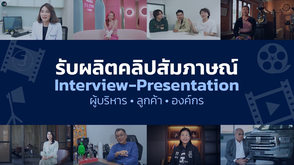 ▶️บริการผลิตคลิปวิดีโอ • สัมภาษณ์ผู้บริหาร • สัมภาษณ์ลูกค้า • พรีเซนต์หน่วยงาน/องค์กร • พรีเซนต์งานแต่งงาน ✅ด้วยทีมงานผู้เชี่ยวชาญและมีประสบการณ์มากกว่า 10 ปี ✅ดูแลลูกค้ามาแล้วทั้งภาครัฐและเอกชน มากกว่า 50 ราย -------------------- 📌ขั้นตอนการทำงาน 1.รับบรีฟงาน/ความต้องการของลูกค้า 2.คุยรายละเอียดงาน/Scope การทำงาน 3.นำเสนอแผนการทำงาน 4.ถ่ายทำตามแผนงาน 5.ตัดต่อ 6.ส่งมอบงาน/แก้ไข -------------------- 🎞️สิ่งที่ลูกค้าจะได้รับ - การทำงานทุกขั้นตอนอย่างมืออาชีพ - คลิปวิดีโอความละเอียดสูง (Full-HD/4K) - ไฟล์ Footage ทั้งหมด (Google Drive) -------------------- 🔎ตัวอย่างผลงาน สัมภาษณ์ผู้ประกอบการ - กาแฟเดอม้ง https://youtu.be/8p8BkGwGoYY สัมภาษณ์ผู้ประกอบการ - กระจูดวรรณี https://youtu.be/Y0Vvm-LNchs สัมภาษณ์ผู้ประกอบการอาหารทะเล - เลลันตา https://youtu.be/7Gviwe3KGdw สัมภาษณ์ผู้บริหารบริหารโครงการอสังหาฯ - Cascade by Patta https://youtu.be/bRCPWF1u_CU?si=Fp7MrZtfcnOeaefK -------------------- **หมายเหตุ** - ราคาที่แสดงเป็นราคาต่อ 1 คิว - ราคาไม่รวม นักแสดง / ช่างแต่งหน้า / Studio / ลงเสียง Voice Over / อุปกรณ์เสริม - ราคาไม่รวม ค่าเดินทางและที่พัก หากต้องถ่ายทำต่างจังหวัด (กรุงเทพฯ และปริมณฑล ไม่คิดค่าเดินทาง) - หากแก้ไขมากกว่า 3 ครั้ง อาจมีค่าแก้ไขเพิ่มเติม (แต่ถ้าแก้ไขเล็ก ๆ น้อย ๆ แก้ไขให้ได้ไม่คิดเพิ่มครับ)