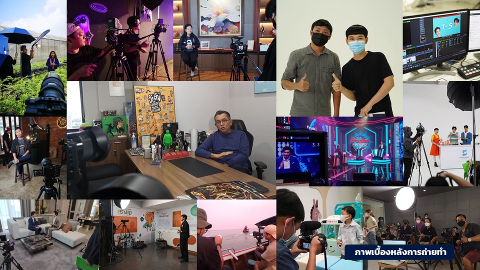 - • อุปกรณ์การถ่ายทำ (กล้องวิดีโอ 2, ชุดไมค์ Wireless 1, ชุดไฟจัดแสง 1)