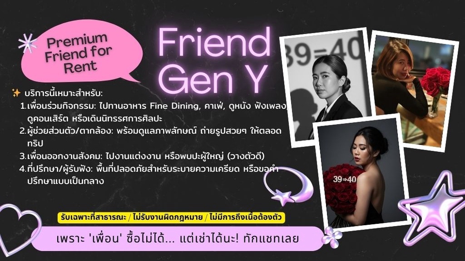 เพื่อนดูหนัง ฟังเพลง เที่ยว รับฟังทุกเรื่อง แต่ไม่รับเรื่อง 1วันจบ
