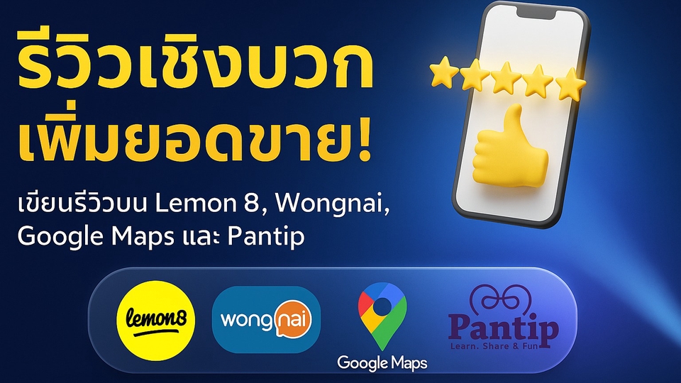 รับรีวิว Google map 5 ดาว / รับเขียนรีวิว Pantip / รับรีวิว Wongnai 5 ดาว / รับเขียนรีวิว Lemon8
