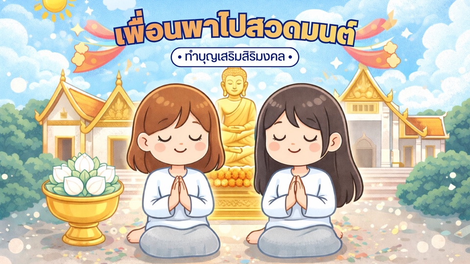 บริการพาไปสวดมนต์ที่วัดหลังเลิกงาน ระยะเวลา 1–2 ชั่วโมง เหมาะสำหรับผู้ที่อยากเข้าวัด ทำบุญ หรือฝึกสมาธิ แต่ไม่สะดวกไปคนเดียว 🙏🏻✨ ขั้นตอนการใช้บริการ ✅ 1. เลือกสถานที่ วันและเวลา ตามที่ตกลงกัน 2. ชำระเงิน สิ่งที่คุณจะได้รับ 🤝 1. บรรยากาศที่เป็นกันเอง 2. เพื่อนร่วมสวดมนต์ ที่สามารถคุยได้ทุกเรื่อง เหมาะสำหรับ ℹ️ 1. คนทำงานที่อยากพักใจหลังเลิกงาน 2. ผู้ที่ต้องการเพื่อนร่วมสวดมนต์/ทำบุญ