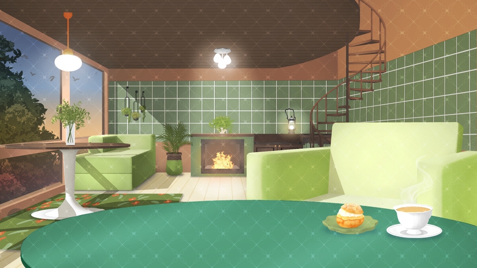 ฉากภายใน เช่น คาเฟ่ ห้องนอน ห้องน้ำ