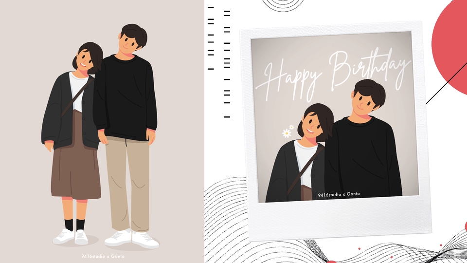 รับวาดรูปจากภาพของลูกค้า มินิมอล ๆ น่ารัก ๆ สไตล์ตามตัวอย่างผลงานเลยครับ บันทึกโมเมนต์สำคัญในชีวิตในสไตล์การ์ตูนมินิมอลน่ารักๆ หรือไว้เป็นของขวัญให้คนสำคัญในวันพิเศษ ๆ ก็ได้ - วาดภาพตามรูปที่ลูกค้าส่งมา สามารถเปลี่ยนท่าทาง/สีได้ตามความเหมาะสม - ภาพไม่มีพื้นหลัง แต่สามารถเพิ่มข้อความ/พื้นหลังชื่อตามตัวอย่าง ฟรี!! - ขนาดภาพใหญ่จุใจ 4000 x 6000 pixel หรือ 24 ล้านพิกเซล - ลูกค้าจะได้เป็นไฟล์ JPG หรือ PNG ตามต้องการ จำนวน 1 ไฟล์ - แก้ไขเล็กน้อยได้ฟรี 2 ครั้ง หลังจากนั้นคิดราคาเพิ่มตามความเหมาะสม รายละเอียดราคาเพิ่มเติม - หากต้องการไฟล์ Ai บวกราคาเพิ่ม 250-400 บาท ขั้นตอนการทำงาน 1. สอบถามรายละเอียดต่าง ๆ ที่ลูกค้าต้องการ 2. ลูกค้าส่งรูปที่ต้องการให้วาด แนะนำเป็นรูปเต็มตัว ท่าทางชัดเจน เพื่อบันทึกโมเมนต์สำคัญได้ดีที่สุด 3. ลงมือวาดตามรูปที่ลูกค้าส่งมา ใช้เวลาประมาณ 3-4 วัน ขึ้นอยู่กับปริมาณงานในช่วงนั้น ๆ 4. ส่งตรวจรอบแรก สามารถแก้ไขเล็กน้อยได้ 2 ครั้ง 5. ส่งงานรอบสุดท้าย