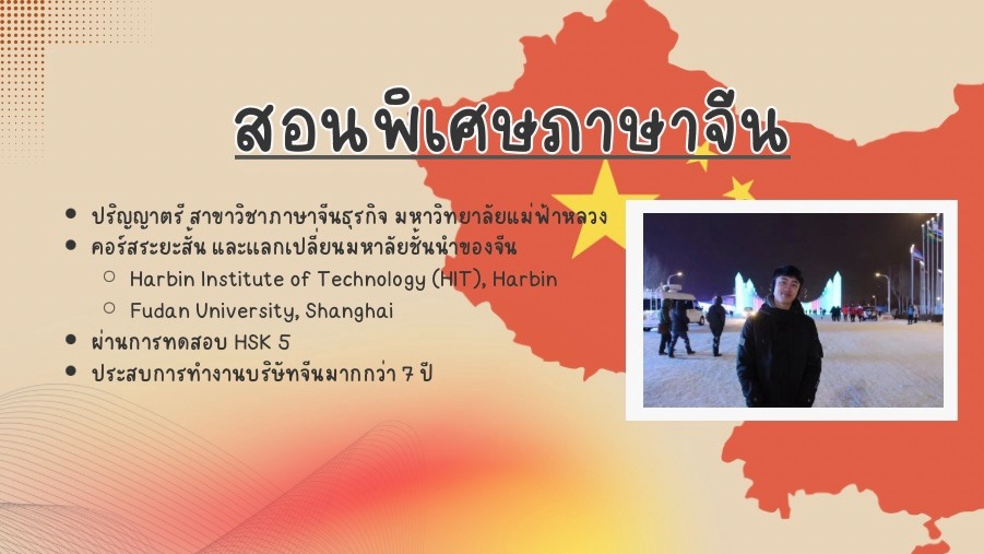 ***รายละเอียดงาน*** - สอนภาษาจีนเพื่อการสื่อสาร / ภาษาจีนเพื่อธุรกิจ / ภาษาจีนเบื้องต้น-ระดับสูง - เรียนตัวต่อตัวหรือออนไลน์ผ่าน Zoom, Google Meet - ปรับเนื้อหาตามจุดประสงค์ เช่น การสอบ HSK, การใช้ในชีวิตประจำวัน หรือการทำงาน - มีแบบฝึกหัด บทสนทนา และวิดีโอเสริมความเข้าใจ - เสริมเทคนิคการจำคำศัพท์และโครงสร้างประโยคให้เข้าใจง่ายและใช้ได้จริง ***ประสบการณ์และความเชี่ยวชาญ*** - มีประสบการณ์ทำงานในบริษัทเอกชนจีนมากกว่า 7 ปี - จบการศึกษาจาก มหาวิทยาลัยแม่ฟ้าหลวง สาขาวิชาภาษาจีนธุรกิจ และหลักสูตรระยะสั้นสถาบันชั้นนำในประเทศจีน - ผ่านการทดสอบวัดระดับ HSK5 ***ขั้นตอนการทำงาน*** - พูดคุยและวิเคราะห์เป้าหมายของผู้เรียน (เรียนเพื่ออะไร ระดับไหน ฯลฯ) - วางแผนหลักสูตรรายสัปดาห์ตามระดับและจุดประสงค์ - เริ่มเรียนพร้อมส่งสื่อการเรียนล่วงหน้าทางอีเมลหรือไลน์ - ติดตามและปรับการเรียนแบบรายบุคคล ***สิ่งที่ต้องการจากผู้เรียน*** - เป้าหมายและระยะเวลาในการเรียน (เช่น เตรียมสอบใน 3 เดือน หรือใช้ในงานธุรกิจ) - ระดับความรู้ภาษาจีนเบื้องต้น (เคยเรียนมาก่อนหรือไม่) - ช่องทางที่สะดวกในการเรียน (Zoom, Line, Google Meet) - เวลาที่สะดวกเรียน และวันหยุดที่ต้องการแจ้งล่วงหน้า
