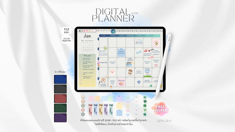 Digital Planner 2026 | ดิจิตอลแพลนเนอร์ สำหรับ iPad/Tablet บนแอป GoodNotes | Notability มี Hyperlink