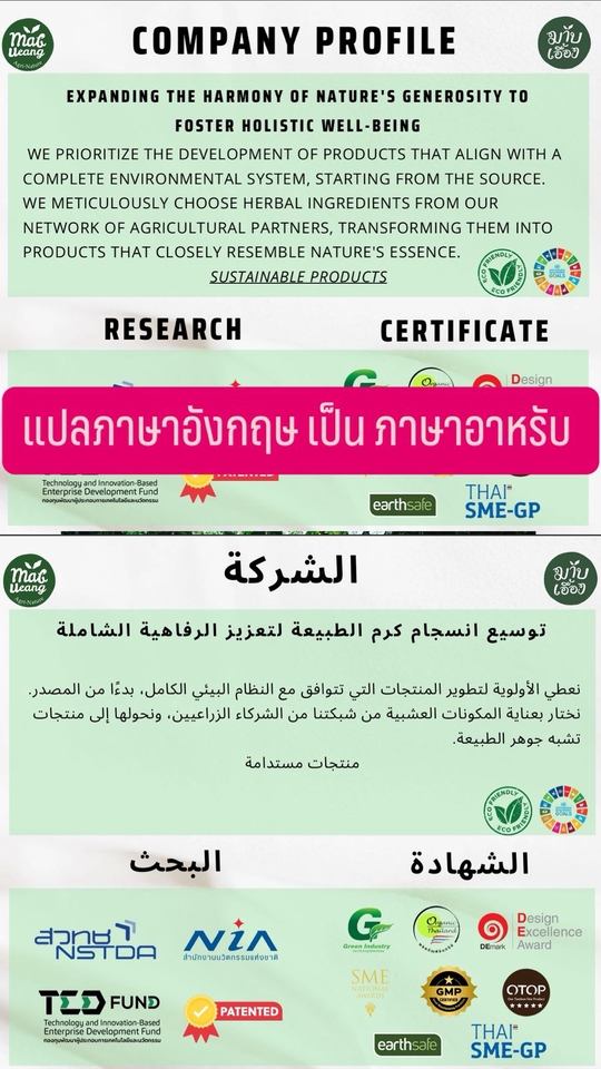 แปลภาษาไทย-อังกฤษ เป็นภาษาอาหรับ