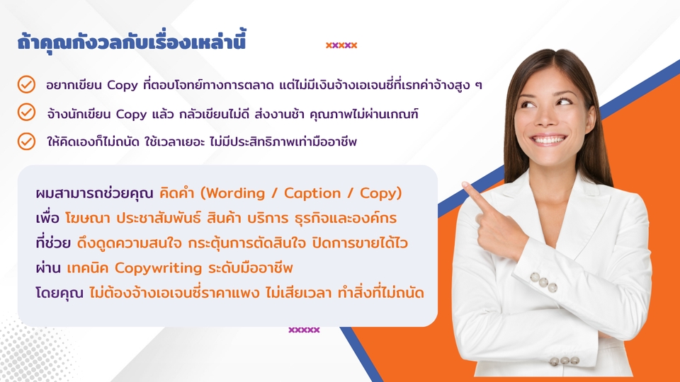 คิด Copy / Caption/ Wording สำหรับโฆษณาประชาสัมพันธ์สินค้าและบริการ
