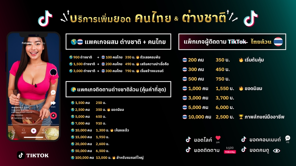 เพิ่มผู้ติดตาม TikTok (🇹🇭คนไทยชื่อไทย + ยอดไม่ลด + บัญชีจริง) ราคาถูกที่สุด🔥