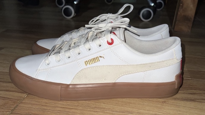 ฿100รองเท้าผ้าใบ วัสดุหนังสังเคราะห์ มีคราบสกปรกระดับเล็กน้อย-ปานกลาง