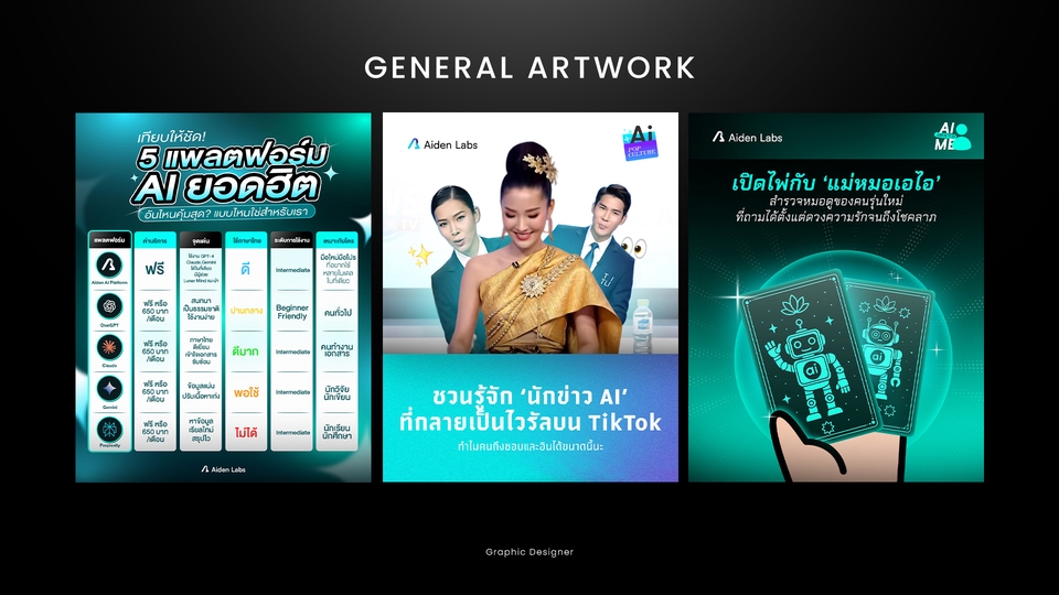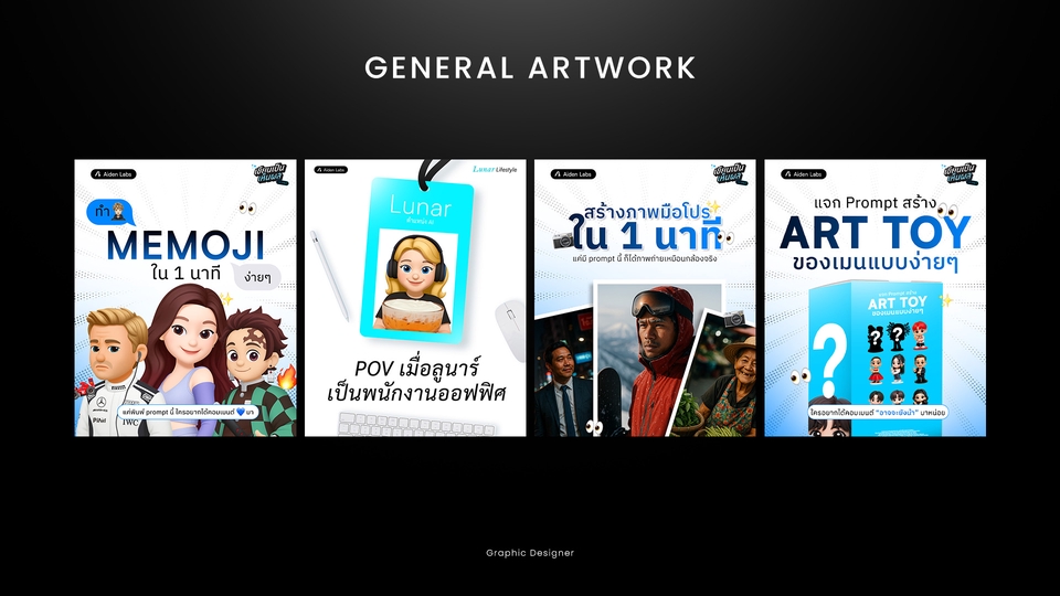"Total Art & Talent" (TAT) ผสมผสานศิลปะและพรสวรรค์เพื่อสร้างสรรค์งานออกแบบที่สะท้อนเอกลักษณ์ของลูกค้า เรารับงานออกแบบกราฟิกหลากหลายประเภท ทั้งโปสเตอร์ แบนเนอร์ พอร์ตโฟลิโอ และอื่นๆ ทุกงานของเราคือการแสดงถึงความทุ่มเทและความรักในศิลปะอย่างแท้จริง เริ่มต้นในราคาประหยัด ขอขอบคุณ ลูกค้าทุกคนที่ไว้วางใจ ให้เราได้ออกแบบความเป็นตัวตนของคุณ สนใจบริการติดต่อสอบถามได้ครับ