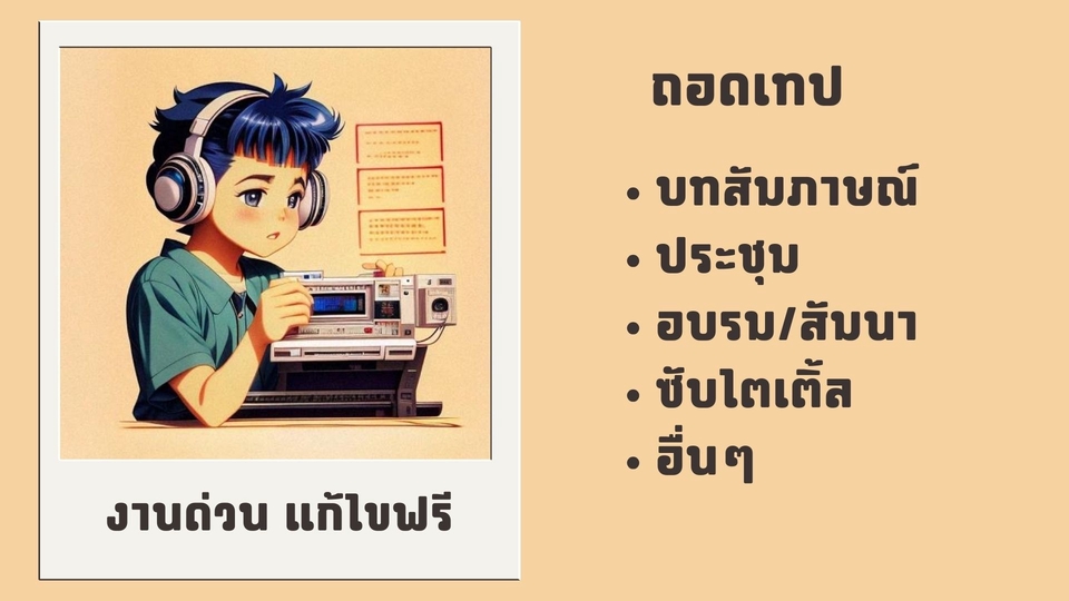 ถอดเทป/ทำซับ “ภาษาไทย” งานถูก งานด่วน งานดี แก้ไขฟรี ส่งก่อนใช้
