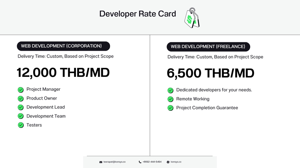 ฉันรับออกแบบและพัฒนาซอฟต์แวร์แบบครบวงจร ทั้ง Web Application และ Mobile Application ด้วยเทคโนโลยีทันสมัย เช่น React, Node.js, และ Javascript รวมถึงออกแบบระบบตามความต้องการของลูกค้าอย่างมืออาชีพ เพื่อให้ตรงตามเป้าหมายธุรกิจ คิดราคาตาม Manday เริ่มต้นที่ 12,000-15,000 บาท หรือเรทฟรีแลนซ์ 6,500 บาท พร้อมส่งมอบงานคุณภาพ ตรงเวลา และรองรับการปรับแก้จนกว่าจะสมบูรณ์ 100%