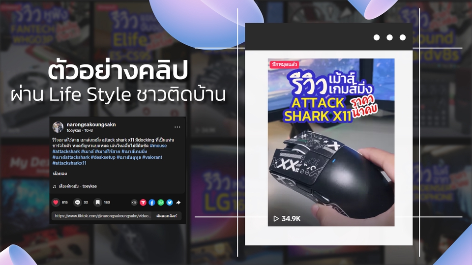 ฿1,500คลิปวีดีโอลง tiktok / lemon8