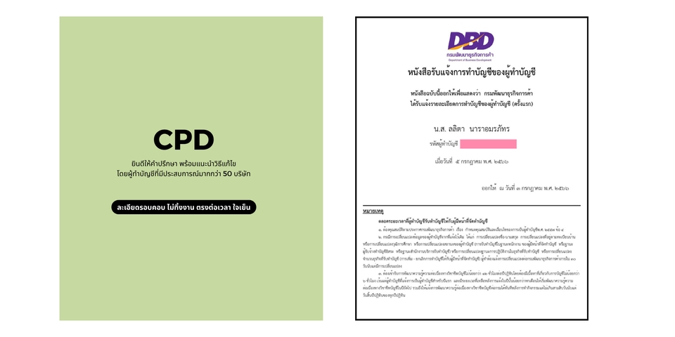 - • ใบเสร็จค่าธรรมเนียมจากทาง DBD