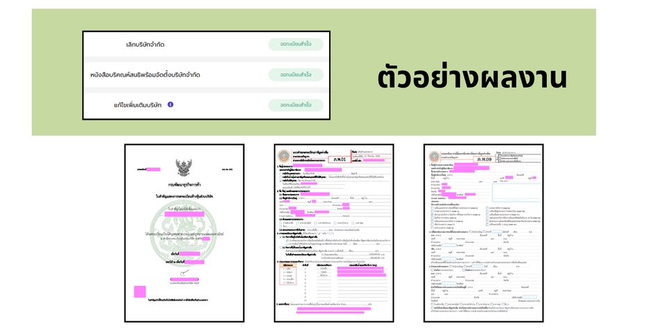 - • เอกสารจดจัดตั้ง ได้แก่ บอจ.2 (หนังสือบริคณห์สนธิ) , บอจ.3 , บอจ.5 (กรณีบริษัท)