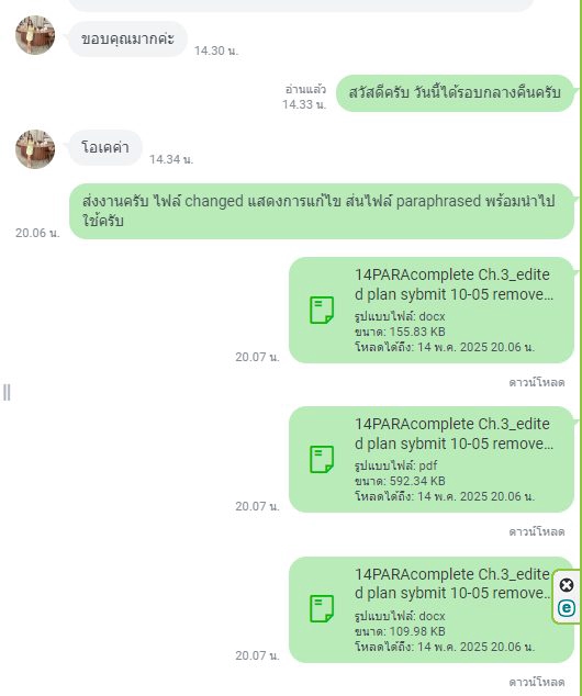 หากงานเดิมติด AI Detection หรือติด Plagiarism ต้องการ Paraphrase (พาราเฟส) หรือ Rewrite ใหม่ เราคือมืออาชีพที่ดีทีสุดครับ ดำเนินการแก้ไข โดยทีมงานนักแปลคุณภาพ และ Native editor หากงานเขียนมาไม่ดี แต่ต้องการปรับแก้ให้เหมาะสม โดยการเรียบเรียงใหม่ ให้ลงตัว เหมาะสมตามหลักวิชาการ บทความตีพิมพ์ ปรับโครงสร้งประโยค คำเชื่อม ปรับคำศัพท์ให้เป็น Academic มาถูกที่แล้วครับ เราปรับให้โดยเจ้าของภาษา เวลาส่งงานจะส่ง 2 ไฟล์ คือไฟล์ที่ track การแก้ไข กับไฟล์ พร้อมนำไปใช้ ขั้นตอนการทำงาน 1. ส่งไฟล์ต้นฉบับเพื่อประเมินราคา 2. ประเมินราคาและเริ่มทำงาน 3. ทำเสร็จแล้วเราจะส่ง 2 ไฟล์ คือไฟล์พร้อมกับ กับไฟล์แสดงการแก้ไข 4. แก้ไขงานได้ 1 ครั้ง 5. งานไม่ต้องตรวจภาษาซ้ำเนื่องจาก native ปรับให้เอง