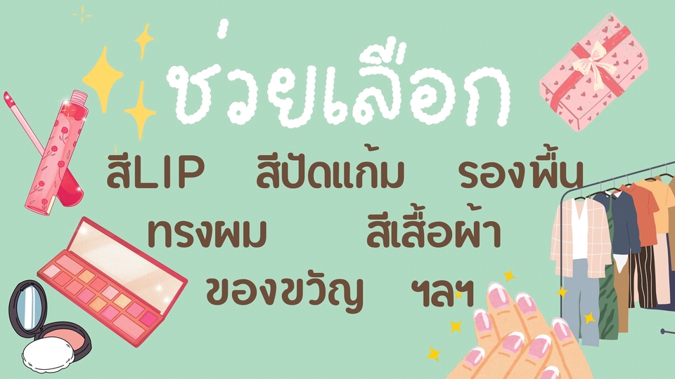 ฿200ช่วยตัดสินใจเลือกสีลิปบนมือ รองพื้น ปัดแก้ม ชุด เสื้อผ้า สีเสื้อผ้า ทรงผม สีลายเล็บ หรืออื่นๆว่าอันไหนเหมาะ 5-6คำถาม ฟีลเพื่อนอยู่ด้วยข้างๆ