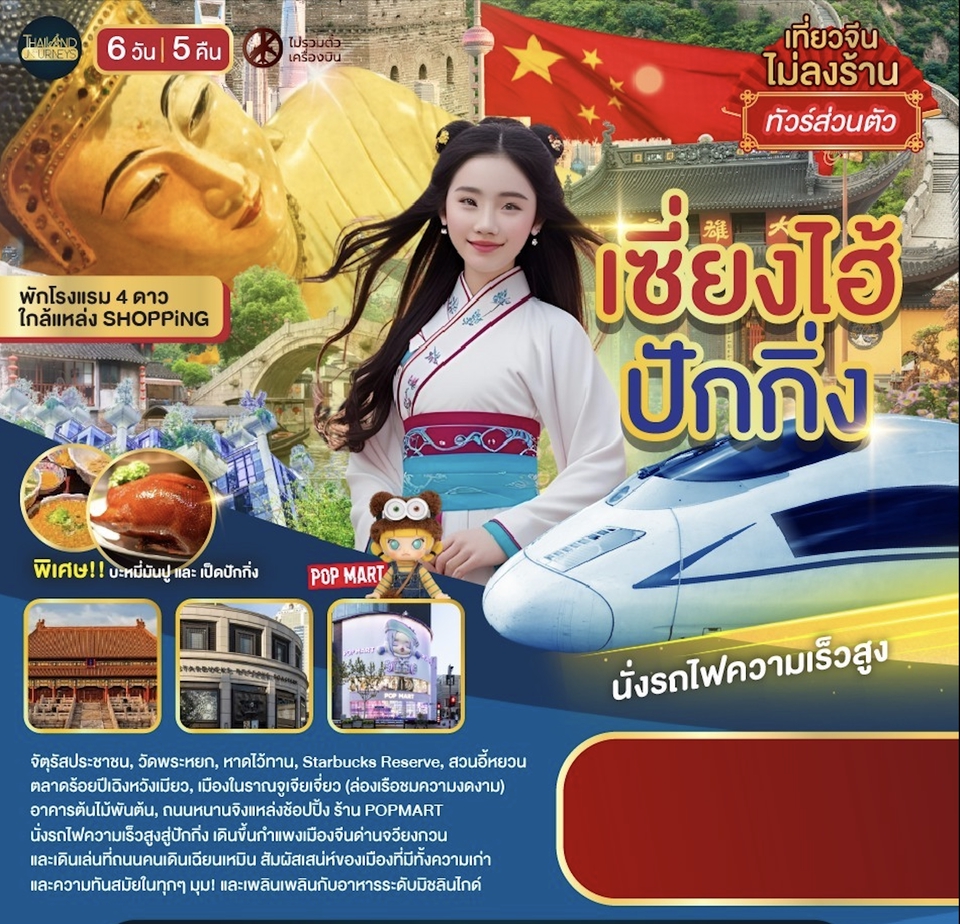 ทัวร์ส่วนตัวนั่งรถไฟความเร็วสูงเซี่ยงไฮ้-ปักกิ่ง 6 วัน 5 คืน