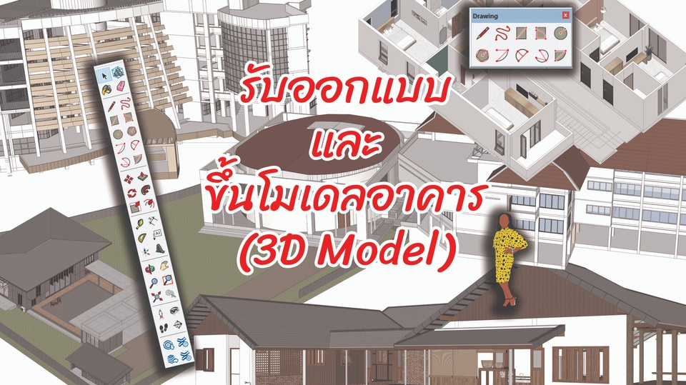 รับทำ 3D model งานสถาปัตยกรรมทั้งภายในและภายนอก เสมือนจริง ทุกรูปแบบทุกประเภท !! จัดทำด้วยใช้โปรแกรม Sketch Up หากสนใจหรือมีรายละเอียดเพิ่มเติม ยินดีอธิบายให้เข้าใจตรงกันก่อนเริ่มงานครับ :) รายละเอียดเพิ่มเติม - ลูกค้าต้องมีแบบแปลนหรือผังพื้น รูปด้าน รูปตัด ในรูปแบบไฟล์ของ AutoCAD (นามสกุล .dwg) หรือ PDF เท่านั้น หากไม่มีสามารถทำการออกแบบให้ได้ โดยจะมีค่าใช้จ่ายเพิ่มเติม - ลูกค้าต้องแจ้งรายละเอียดของแนวคิดงาน รูปแบบของงาน โทนสี เป็นต้น - จะส่งอัพเดทงาน เพื่อตรวจสอบเป็นงวดหน้าตามสัญญาและจำนวนงาน โดยสามารถปรับแก้ได้ 3 ครั้ง หากเกินจะขอคิดค่าใช้จ่ายเพิ่มเติมตามจำนวนงานที่ได้ปรับแก้ สิ่งที่ลูกค้าจะได้รับ -ไฟล์ 3D Model จากโปรแกรม Sketch Up ** ปล.หากต้องการให้ทำการเรนเดอร์หรือทำภาพเสมือนจริง (3DPerspective) สามารถจัดจ้างเพิ่มเติมได้ครับ โดยจะมีค่าใช้จ่ายเพิ่มเติม